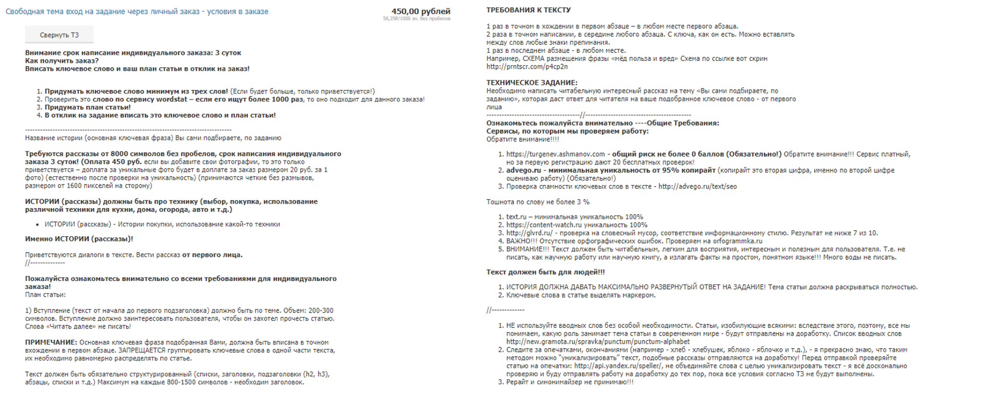 Ты и сам понимаешь, что текст, который в будущем принесет сотни тысяч рублей заказчику, не может создаваться за 200 рублей и 2 часа по ТЗ на бирже.
