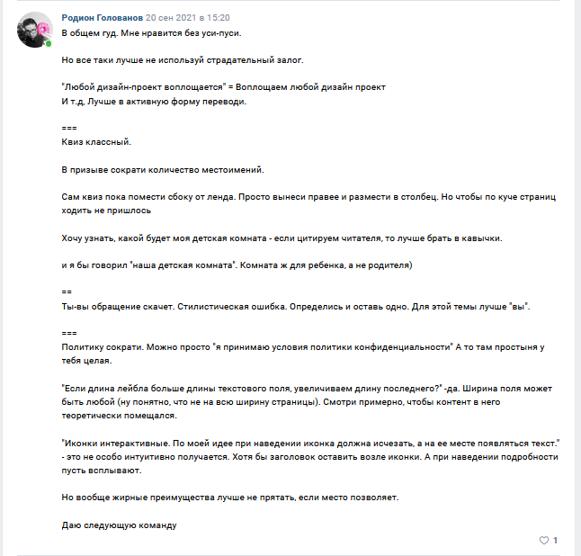 Но даже в таком случае, ты делаешь все интуитивно, читаешь статьи, спрашиваешь советы — получаешь много правок и критики. Не всегда эта критика мягкая.