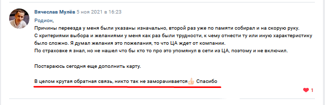 Даже если это ваш реальный друг/знакомый. Ведь качественная обратная связь трудоемкая.