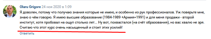 Фрагмент отзыва выпускника на эту же тему.
