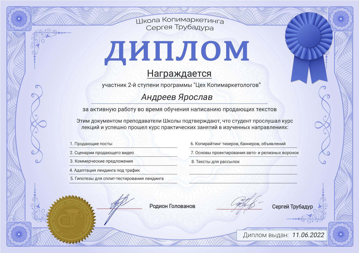 Повторимся, это ЕДИНСТВЕННАЯ в Рунете программа по копимаркетингу. И она полностью решает задачу по подготовке копимаркетолога с нуля до профессионала, который работает на уровне маркетинговых смыслов и воронок.