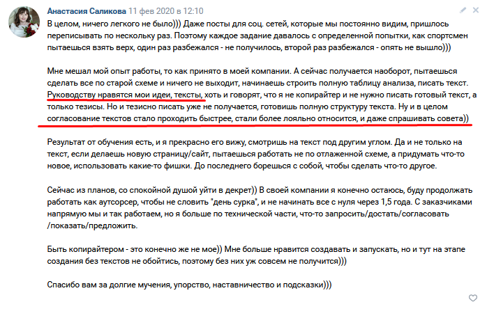 Медийный тренер не будет давать тебе тот же объем обратки, что и обычный копирайтер-практик, т.к. его время стоит очень дорого.